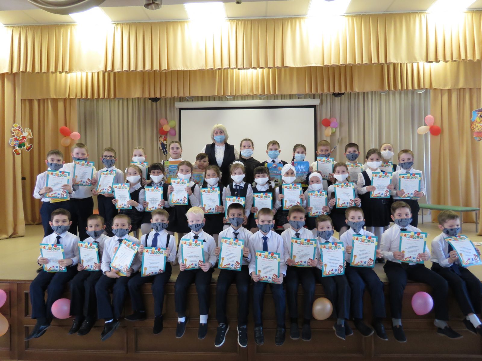 Сегодня в 1Г классе (учитель Галимова С.А.) прошёл праздник "Прощание с Азбукой". Дети показали родителям и гостям всё чему научились: пели, танцевали, рассказывали стихи на русском и татарском языке. Ученики своими выступлениями подняли всем настроение. Все остались довольны.