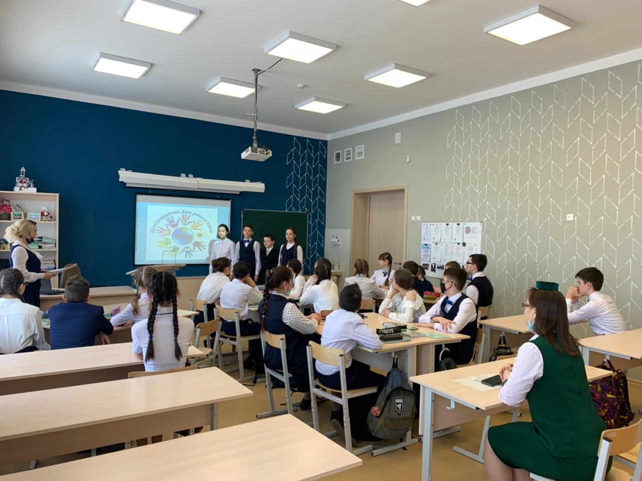 В 7 в классе прошёл КВН по русскому языку, посвящённый Международному Дню родного языка «С русским языком можно творить чудеса». На данном мероприятии присутствовала заведующая отделом обслуживания взрослых Арской центральной библиотеки Гульназ Наилевна. -