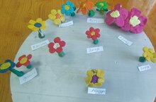Максат: Әвәләп ясаганда,чәчәк образын күз алдына китереп,аны тәэсирле итеп чагылдыра белү сәләтен формалаштыру.Балаларның пластилинны ике уч белән түгәрәкләп һәм туры итеп тәгәрәтү,сузу,җәю,чеметкәләп кую күнекмәләрен ныгыту.Әвәләп ясаганда өслекләрне тигезләргә өйрәтү.