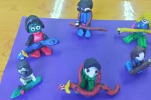 Цель:Продолжать учить детей лепить небольшую скульптурную группу по мотивам сказки ,передавая пропорциональные отношения между персонажами.Закреплять умения передавать фигуры в движении,располагать фигуры на подставке.Продолжать развивать умение оценивать работы ,самостоятельность.