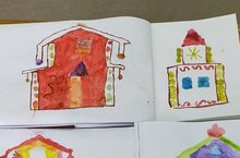 Цель : Формировать умение создавать в рисунках сказочные образы.Закреплять умение рисовать основу здания и придумывать украшающие детали.Формировать умение делать набросок простым карандашом,а затем оформлять изображение в цвете ,доводить замысел до конца,добиваться наиболее интересного решения.Развивать умение оценивать рисунки в соответствии с задачей изображения.Совершенствовать приемы работы красками ,способы получения новых цветов и оттенков.