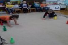Максат :Төгәллек ,сакчыллык,игътибарлылык тәрбияләү.Предметлар арасында мүкәйләү,тигезлек саклау- кулны башка куеп гимнастик эскәмиягең рейкасыннан йөрү,сикерү күнекмәләрен үстерү."Үрмәкүч һәм чебеннәр"хәрәкәтле уенын ештыру.