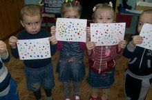 Максат:Балаларны бармаклары ярдәмендә рәсем ясарга өйрәтүне ,төсләр белән таныштыруны ,төсләр буенча белгәннәрен ныгытуны дәвам итү; рәсем ясауга кызыксыну һәм уңай мөнәсәбәт формалаштыру; көнкүреш күнекмәләрен үстерү. -