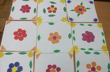 Максат:Квадратта бизәк төзергә өйрәтү.Кәгазьне гармошка итеп бөкләп бер үк төрле предметны берничәне кисәргә өйрәтү,бизәү элементларын квадрат формага (уртага,почмакларга)урнаштыра белү күнекмәсе бирү,композиция төзергә өйрәтү,чиста.пөхтә эш итүләренә ирешү. -