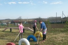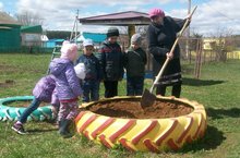 Уен мәйданчыгын матурлыйбыз: чәчәкләр утыртырга клумбаларны , уен комлыкларын йомшарттык. Көн җылынганын гына көтәбез.