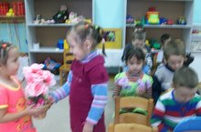 Автобуска утырып, Диләне туган көне белән котларга бардык. Матур теләкләр теләп, бүләкләрне тапшырдык.