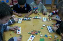 Максат: ике кечкенә саннан 4 һәм 5 саннарын ясау, аларны ике кечкенә санга таратып карарга өйрәтү; 10 эчендә санау күнекмәсен ныгыту; 15 саны эчендә икенче дистә ясалу белән таныштыру; предметларның авырлыгы турында белемнәрен ныгыту; кәгазь битендә дөрес ориентлашу, предметларның пространствода урнашуын сүз белән билгеләү. Геометрик фигуралардан предметлар төзү күнекмәләрен ныгыту.