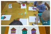 Цель:Формировать умение вырезывать на глаз силуэты простых по форме предметов.Развивать координацию движений руки и глаза.Учить предварительно заготавливать отрезки бумаги нужной величины для вырезывания изображений.Приучать добиваться отчетливой формы.Развивать чувство композиции.