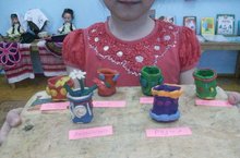 Максат :Бер кисәк пластилиннан ,шомарту , бөгү алымнарын кулланып ,кувшин ясау алымнарын өйрәтү.Чиста ,пөхтә эш итә алуларына ирешү.Җиһаз :Кувшин ,рәсемнәр ,пластилин ,такта ,салфетка. -