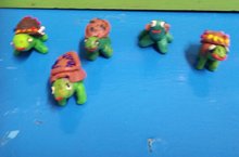 Цель занятия: Учить детей лепить черепаху из отдельных частей: панцирь, голова, лапы, хвост; упражнять в приемах скатывания, вдавливания, раскатывания, присоединения и примазывания. Развивать у детей мелкую моторику и мускулатуру рук при работе с пластилином.