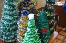 Әти-әниләр һәм балалардан төрле материалдан эшләнгән яңа ел чыршысы көтеп калабыз.
