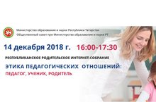Во исполнение плана работы Министерства образования и науки Республики Татарстан 14.12.2018 с 16.00 до 17.30 состоится Республиканское родительское интернет-собрание «Этика педагогических отношений».