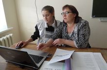 Мәктәпнең татар теле укытучысы Сафина А. М. 7 класс укучысы Шәйхиева Зәлинә белән Муса Җәлилнең иҗади мирасына багышланган фәнни - иҗади конференциядә катнашу өчен әзерләнәләр.