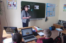 1а - 3а класслары укытучысы Гайнуллина Г.Ә. "Башлангычлар" атналыгы кысаларында ачык дәрес үткәрде. 1 а классында дәрес темасы: "Ярдәмче сүзләр", 3 а классында "Витаминлы аш" хикәясе. Укучылар яшелчәләр турында табышмакларга җавап таптылар, аннан шул яшелчәләр турында өстәмә мәгълүматны укыдылар, витаминнар турында фикер алыштылар, сүзлекләр белән эшләделәр. Дәрестә бик күп таратма марериаллар кулланылды.
