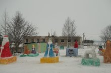 Мәктәбебез каршында әкияти матурлык тудыручы Кыш Бабай, Кар кызы, Ат, кәҗә һәм башкалар күзләрне иркәлиләр