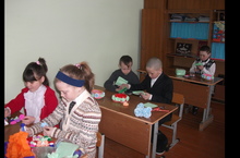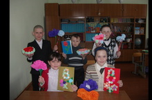 Балалар технология дәресендә үз куллары белән әниләргә бүләк әзерлиләр.
