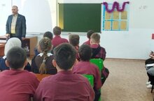 12нче декабрь көнне мәктәбебездә " Мәгариф идарәсе" муниципаль учреждениесе җитәкчесе Р.Д. Мөхәмәдияров һәм аның урынбасарлары А.Г. Камаева, Л.Р. Галимова укучылар белән очраштылар. Рамиль Данилевич укучыларны районыбыздагы мәгариф өлкәсе, аның үсеше белән таныштырды. Әңгәмә эчтәлекле презентация белән үрелеп барды. Укучылар үзләрен кызыксындырган сорауларын бирделәр. Ләйсән Ринатовна укучылар белән "Туган ил кайдан башлана?" дигән темага әңгәмә алып барды.