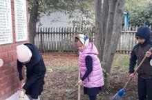 Акциягә кушылып, мәктәбебез укучылары һәйкәл янын тәртипкә китерделәр.