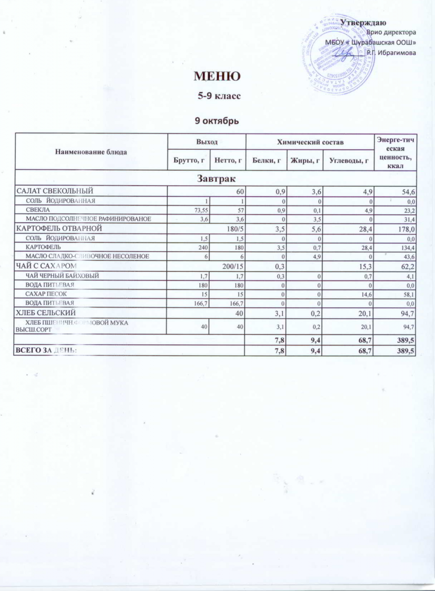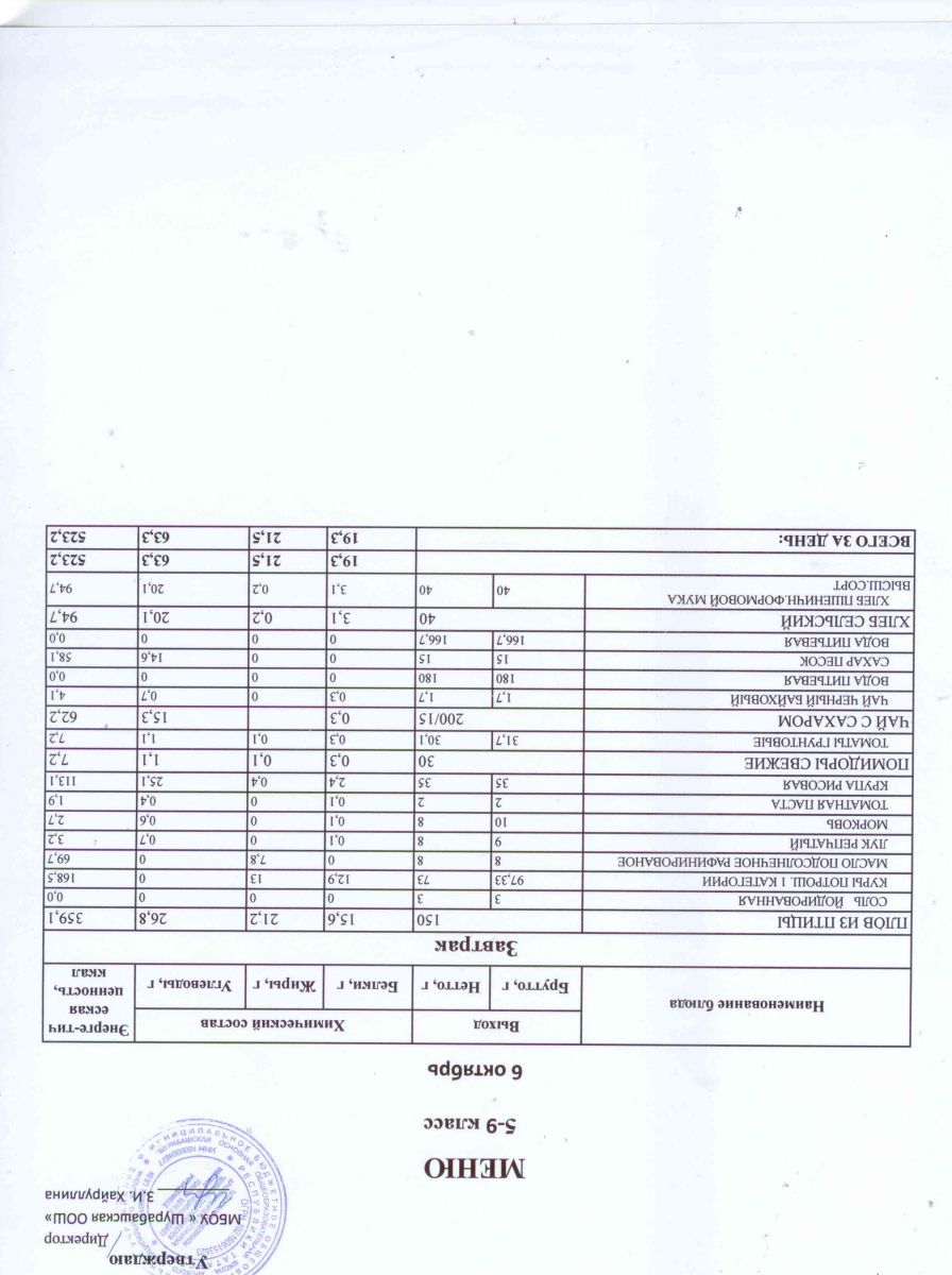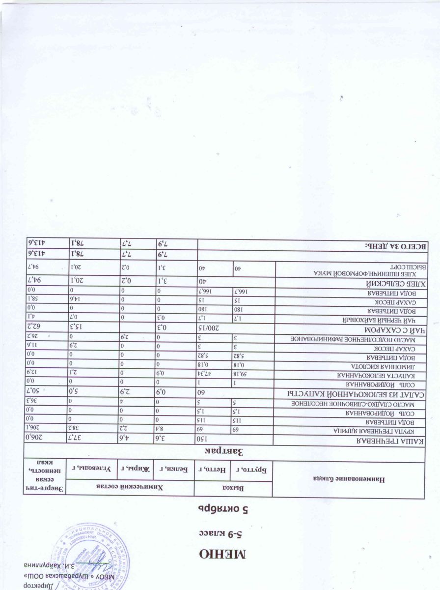 Меню на 01_10_20 1-4 кл Меню на 01 _10_20 5-9 кл