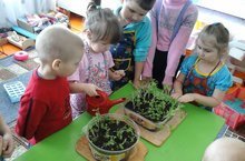 Табигать почмагында эш. 20.12.2016 Бала кече яшьтән үк хезмәткә өйрәнеп үсәргә тиеш. Безнең балалар бакчасында да хезмәт тәрбиясе өстендә эш системалы рәвештә алып барыла. Балалар табигать почмагында үскән гөлләргә су сибәләр, тузаннарын сөртәләр.Культуралы орлыклар чэчеп,аның тишелешен,үсүен кузәтәләр. Шул рәвешле алар башлангыч хезмәт тәрбиясе алалар.