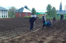Иртә белән җыелып сөйләшкәч зарядка ясап алганнан соң укучыларыбыз белән тырышып эшкә керештек.Мәктәп яны бакчасын тәртипкә китерү өстендә укучыларыбыз бик зур хезмәт куялар. Алар кәбестә утырту,су сибү ,чәчәк утырту кебек эшләрне бик теләп башкаралар.
