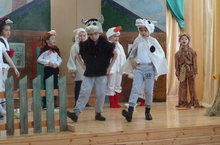 Дәресләр төгәлләнгәннән соң укучыларны бүген культуралы ял көтте. Түгәрәк җитәкчесе Вильданова Г.Ш. җитәкчелегендә 2-3 класс укучылары Ф.Яруллинның "Баз бакасы" исемле спектаклен сәхнәләштерде. Сәхнә бизәлеше, матур костюмнар, җырлы-биюле күренешләр тамашачыны үзенә җәлеп итте. Афәрин!