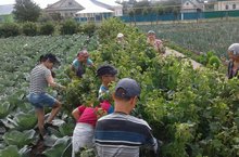Мәктәп яны тәжрибә участогында эш гөрли.Анда эш план нигезендә алып барыла.11 нче июльдән 16 нчы июльгә кадәр укучылар бакчада укытучы Сабитова Т.Ә. житәкчелегендә эшләячәкләр.Балалар чүп утыйлар,мәктәп территориясен чистарталар.