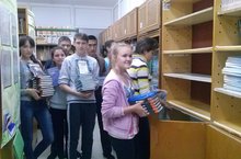 Бүген иртәдән яңгыр булганлыктан балалар мәктәп эчендә эшләделәр.Алар библиотекарь Ләлә Фоатовнага китапларны ремонтларга, полкаларны чистартырга һәм китапларны икенче уку елына әзерләргә булыштылар