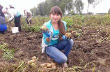 Бүген мәктәп бакчасында мәктәп хезмәткәрләре практикадагы балалар белән берлектә бәрәңге алдылар. Бәрәңге уңышы быел бик мулдан, йодрык кадәрле бәрәңгеләрне җыеп бетерерлек түгел. Ә ашханәдә пешекчеләр пешергән мундирлы бәрәңгенең тәмлелеге... Ел буена җитәрлек бәрәңге чүпләп , бакчадагы матурлыкка сокланып, өйләргә таралыштык.