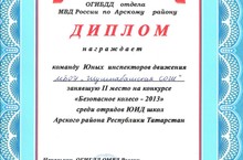 Укучыларыбыз "Безопасное колесо- 2013" конкурсына барып мәктәбебез данын яклап кайтты. Аларны чын күңелдән Арча районы мәктәпләре арсында II урын алулары белән котлыйбыз! Җитәкчеләре Вильданов Р.Г. ка рәхмәтебезне белдерәбез. Афәрин Шушмабашлылар!