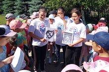 Бүген лагерьда 17 нче көн. Мәктәпнең "Самостоятельные дети" отряды лагерьга йөрүче балаларга "Россия без табака" акциясен уздырдылар.
