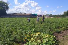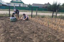 Җәйге чорда мәктәп бакчасында эш дәвам итә, бу атнада укучылар бәрәнге чүбен утап, су сиптеләр.