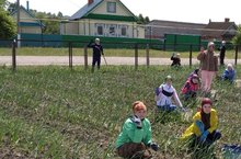 Мәктәптә укулар тәмамланды. Мәктәп бакчасында хезмәт чиреге башланып китте. Укучылар мәктәп яны тәбрибә участогында җәйге эшләр белән мәшгуль.