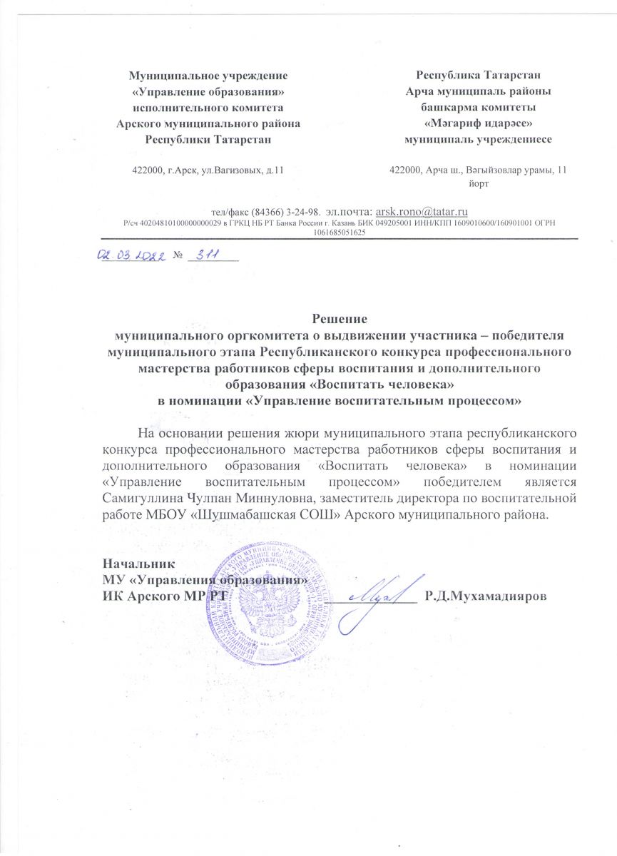 Муниципальное бюджетное общеобразовательное учреждение «Шушмабашская средняя общеобразовательная школа» Арского муниципального района Республики Татарстан/Татарстан Республикасы Арча муниципаль районының “Шушмабаш урта гомуми белем мәктәбе” муниципаль бюджет гомуми белем учреждениесе
