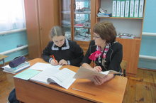 В школе по расписанию проходит подготовка победителей школьного этапа олипиады к муниципальному этапу всероссийской олимпиады. Наиболее эффективный метод взаимодействия учителя с одарённым ребёнком - индивидуальные занятия. Учитель русского языка и литературы Хусаинова Г.М. проводит занятие по подготовке к олимпиаде по русскому языку с ученицей 8 класса Камаловой А.Б.