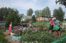 Август аеның бик эссе торуы сәбәпле, мәктәп бакчасында су сибү даими рәвештә алып барыла.