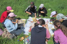5 - 7 класс укучылары бүген походта. Разил абыйлары оештырган күңелле спорт ярышларыннан соң, әти- әни төйнәп җибәргән "тәмнүшкәләр " аеруча тәмле. Баш күтәрергә дә вакытлары юк, "тырышып" ашыйлар.