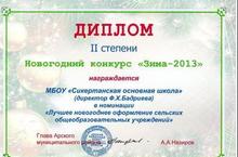 Диплом II степени в новогоднем конкурсе "Зима - 2013" 13.01.2013
