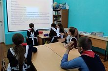 100 лет ПионерииВ год 100 – летнего юбилея со дня основания пионерской организации в нашей школе прошёл классный час на тему “Путешествие в страну Пионерию”. В этом году исполняется 100 лет со дня основания пионерской организации.Ученикам рассказали об истории создания организации, жизни пионеров, их правилах и моральных ориентирах. Большой интерес у современных школьников вызвали символы пионерской организации – знамия, красный галстук, пионерский значок, горн и барабан.Пионерлар оешмасына нигез салынуның 100 еллык юбилее уңаеннан, безнең мәктәптә "Пионериягә сәяхәт"дигән темага сыйныф сәгате узды. Быел пионерлар оешмасына нигез салынуга 100 ел тула. Укучыларга пионерларның оешу тарихы, тормышы, аларның кагыйдәләре һәм әхлакый ориентирлары турында сөйләделәр. Пионер оешмасы символлары – байрак, кызыл галстук, пионер значогы, быргы һәм барабан бүгенге укучыларда зур кызыксыну уятты. -