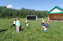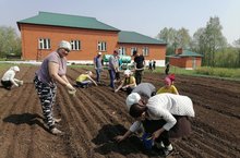 Җәй көне дә мәктәп яны бакчасында эш гөрли. Укучылар яшелчәләргә, җиләк-җимешләргә, чәчәкләргә су сибәләр, чүп утыйлар, төпләрен йомшарталар. Бергә-бергә эшләү куңелле дә, рәхәт тә, шулай ук укучылар хезмәткә өйрәнәләр. Ә инде тырыш хезмәт нәтиҗәсе – мул уңыш, матур тирәлек!И летом на пришкольном участке кипит работа. Ребята поливают овощи, ягоды, цветы, полют сорняки на грядках, рыхлят почву. Совместная работа доставляет радость и удовольствие, ребята получают трудовые навыки. А результатом старательного труда является богатый урожай и красивая территория школы. -