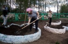 Бүген бездә өмә. Бергәләшеп яшелчәләр һәм чәчәкләр утырттык.