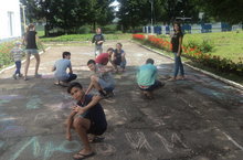 "The end" - "Шатлык"-2015 .Заключительный день. 25.07.2015 Наше утро началось с рисунков на асфальте...Дети писали свои имена ,делали рисунки,написали ярко и красочно название лагеря и смены ,ну и конечно же,не забыли про своих вожатых и руководителей смены.Всем позитива и доброго солнечного настроения!!!!!