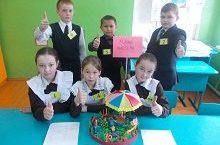 Сегодня в нашей школе проводилась оценка сформированности метапредметных результатов в ходе выполнения группового проекта в 4-х классах. Группа под названием "Юные мастера" выполнилf макет детской площадки из пластилина и из бросового материала. В завершении группа выступила с защитой своей работы и каждый ученик оценил свою работу по итогам изготовления поделок.