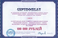 Наша школа заняла 1 место в спартакиаде среди учащихся общеобразовательных учреждений и награждена сертификатом на сумму 100 000 (сто тысяч) рублей на приобретение спортивного оборудования.