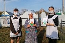 Мәктәбебез укучылары З.Зарипова һәм И.Гаптерашитова җитәкчелегендә тыл ветераны Рәйсә апа Шиһабиевана гомер бәйрәме-туган кәне белән тәбрикләделәр, изге теләкләрен җиткерделәр. Очрашу чәй өстәле артында дәвам итте, Рәйсә апа хатирәләре белән уртаклашты.