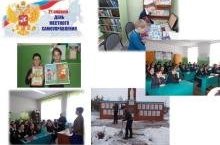 В честь дня в школе были запланированы и проведены следующие мероприятия: конкурс рисунков среди 1-5 классов на тему «Мой сельский округ», библиотечные часы на тему «О вопросах местного самоуправления», классные часы «Что такое местное самоуправление?», субботник по благоустройству территории школы и наведению санитарного порядка. День местного самоуправления россияне отмечают 21 апреля. Указ об учреждении праздника был подписан президентом страны в 2012 году. Дата праздника приурочена ко Дню подписания Екатериной II Жалованной грамоты городам, считается, что именно это событие послужило началу российского законодательства о самоуправлении на местах. Свое второе рождение местное самоуправление получило в конце восьмидесятых годов, а в 1993 году ему было отведено не последнее место в новой Конституции. В современном государстве самоуправлению уделяется не меньше внимания. Правительство страны расширяет финансовую самостоятельность муниципальных образований и мотивирует местные власти к принятию самостоятельных решений.