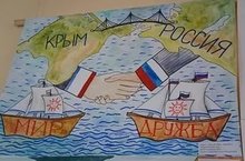 Сегодня в школе состоялись мероприятия, посвященные годовщине воссоединения Крыма и Севастополя с Россией. В рамках мероприятий, учащиеся 1-5 классов участвовали в конкурсе рисунков по данной тематике.