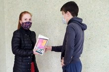 Такую акцию проводит МОиН РТ. Планшеты «Samsung Tab A» из рук директора школы получили 3 ученика 9-го класса из многодетной семьи. -
