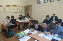 9 нчы сыйныф укучылары рус теленнән иртәгә булачак сынау имтиханына тырышып әзерләнәләр.