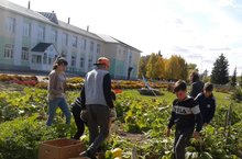Мәктәп яны участогында эш гөрли. Укучылар үзләре үстергән яшелчәләрдән мул уңыш җыеп алдылар.